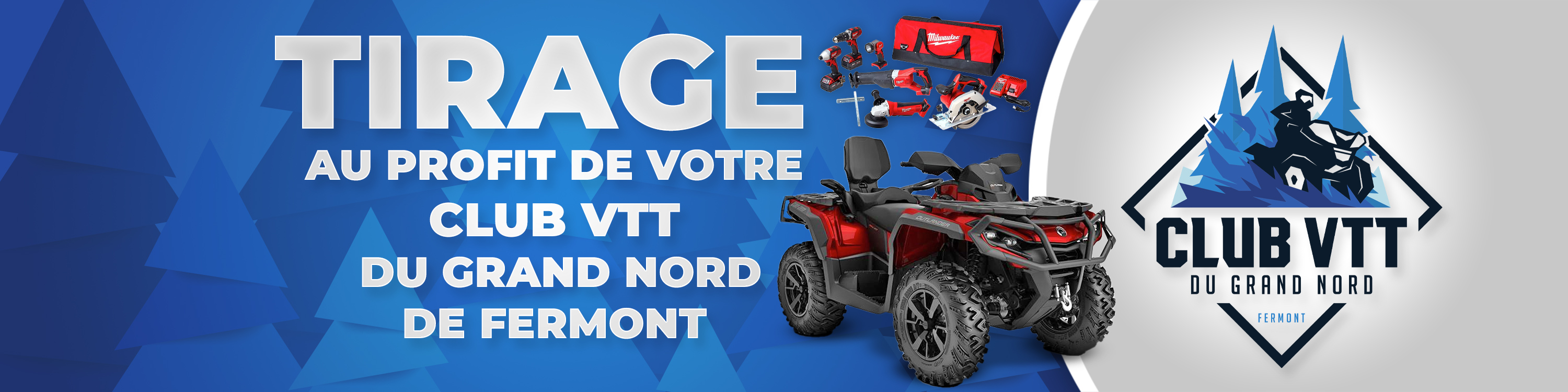 Le tirage/concours « Tirage au profit de votre club VTT du Grand Nord de Fermont » est organisé par club VTT du Grand Nord de Fermont et administré par la firme Créomax inc. Il s’agit d’un tirage/concours local, ouvert au grand public. Résidents de la Côte-Nord, par voie d’un tirage traditionnel à l’aide de la vente de billets en papier cartonné qui sont vendus dans trois commerces distincts.